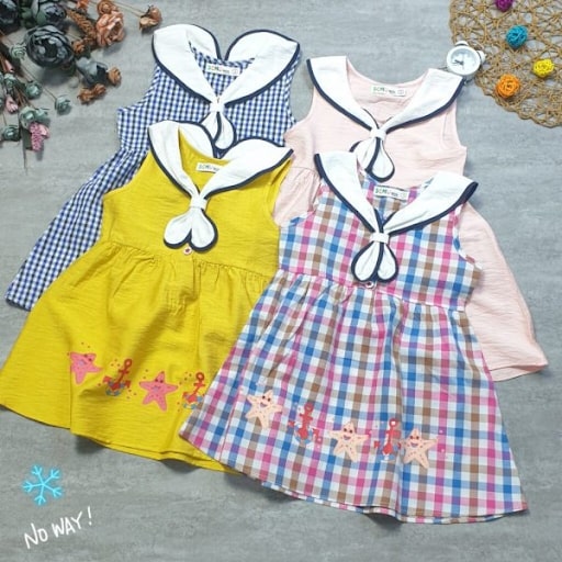 Đầm thủy thủ cổ nơ họa tiết xinh xắn, phong cách đơn giản, năng động