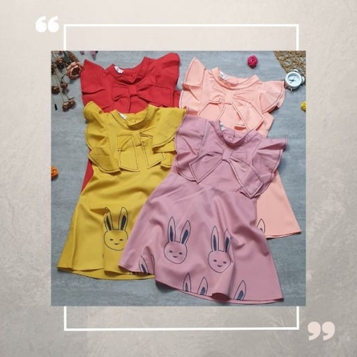 Đầm nơ cổ thêu họa tiết thỏ đáng yêu