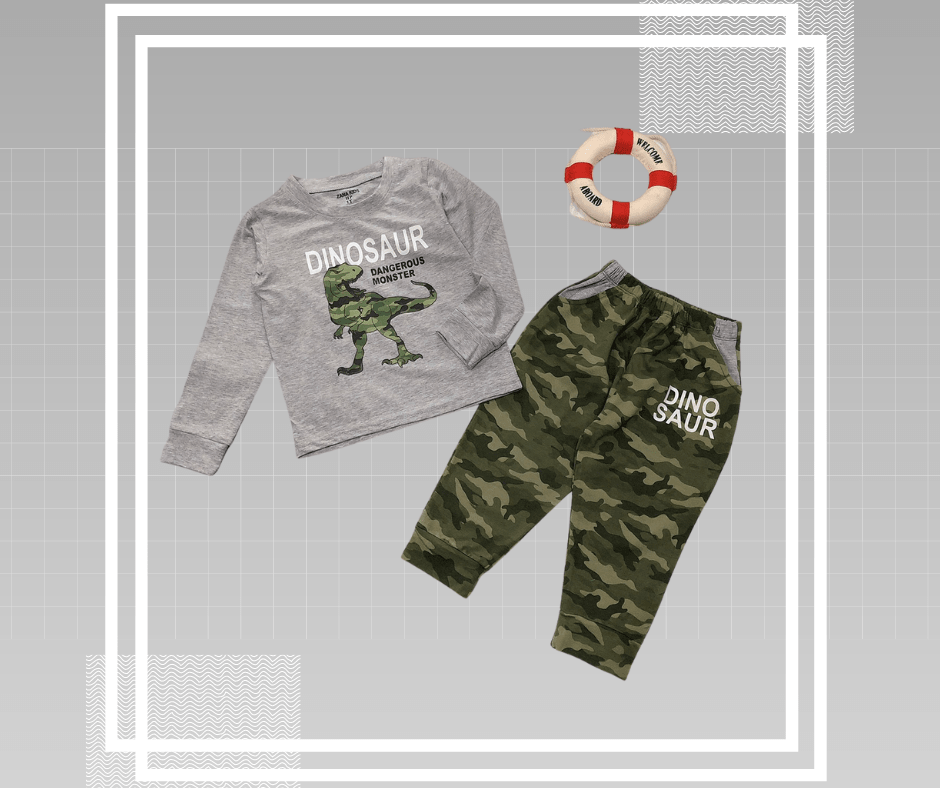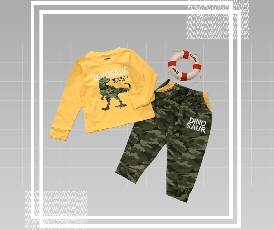 Bộ bé trai in khủng long quần lính cực ngàu.